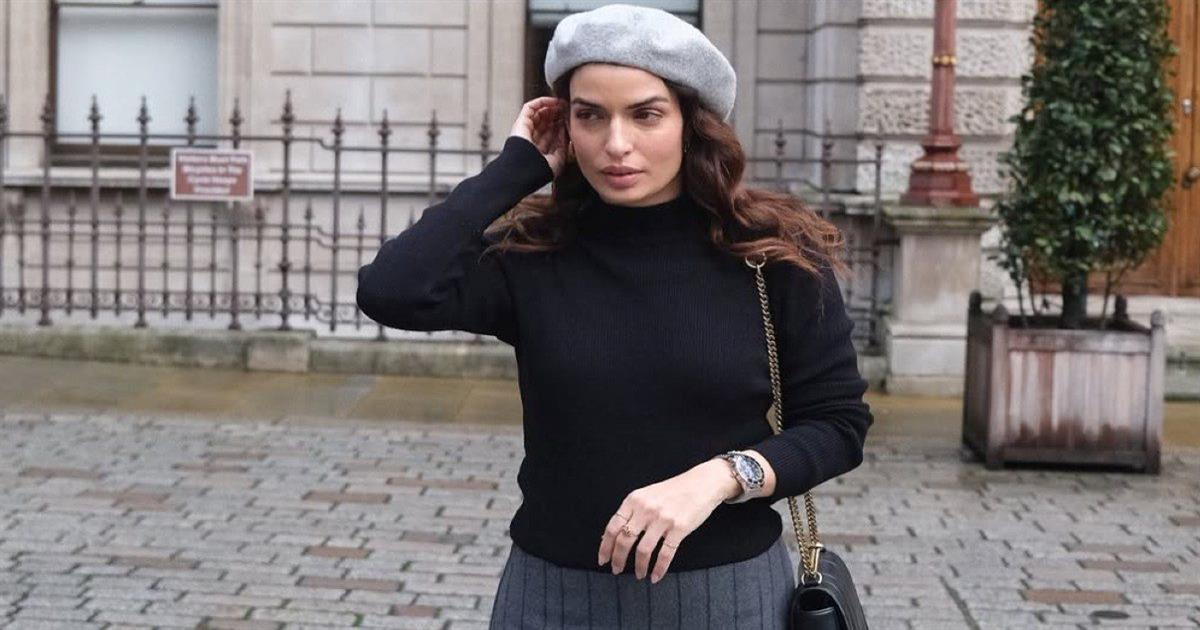 Επιλέγοντας ένα κλασικό ρετρό σύνολο, με μίνι φούστα με πιέτες και ζακετάκι σε ουδέτερους τόνους, συμπλήρωσε το look της με ένα δαντελένιο καλσόν και ψηλοτάκουνες γόβες σε σοκολατί χρώμα, αναδεικνύοντας τη θηλυκότητα, τη vintage αισθητική και το sεxiness σε… ισόποσες δόσεις!