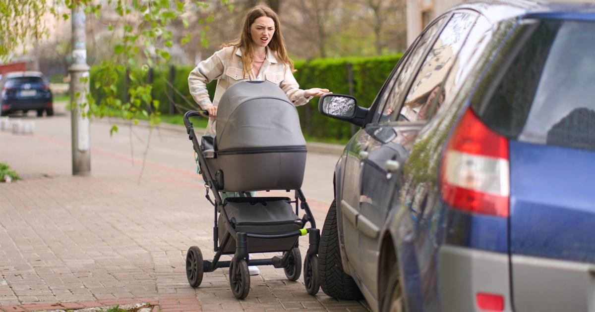 Δεύτερο «σοκ»: το παρκάρισμα. Αυτοκίνητα και μηχανάκια πάνω στα πεζοδρόμια, αναγκάζοντας την ίδια να κάνει ελιγμούς με το καρότσι του μωρού, σαν να βρίσκεται σε πίστα… συγκρουόμενων στο λουναπάρκ.