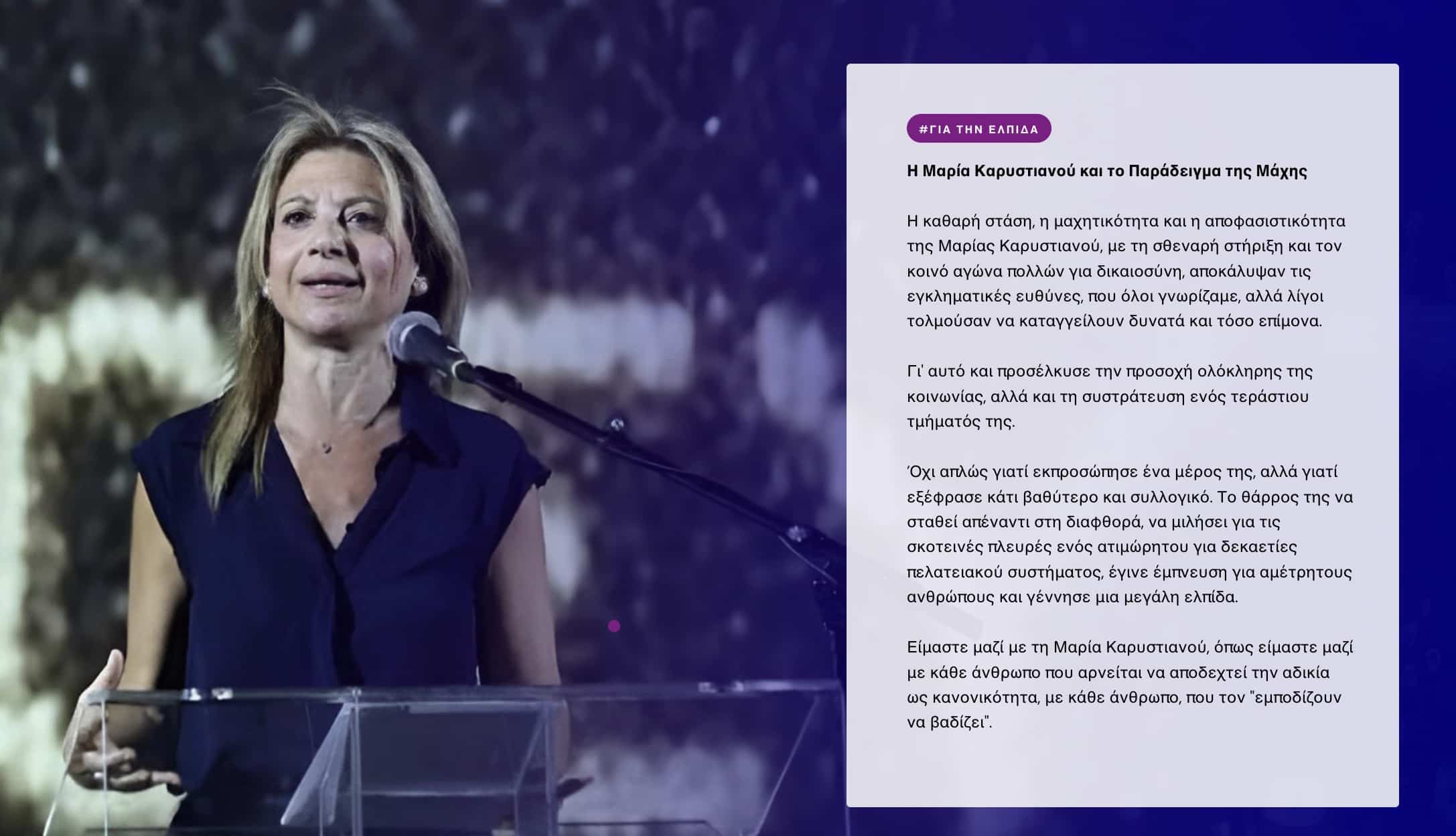 Μάλιστα στην ιστοσελίδα xekiname.gr η Μαρία Καρυστιανού περιλαμβάνει και τις βασικές πληροφορίες για την φυσιογνωμία και τις θέσεις της.